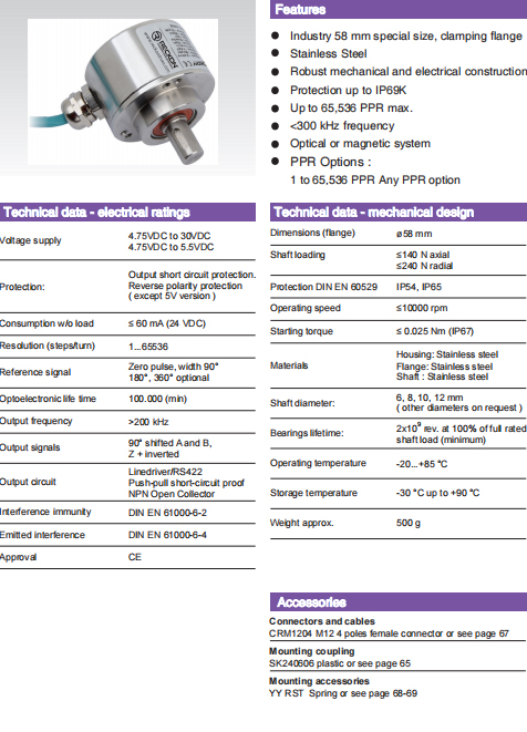 | ○ | 輸出頻率:>200 kHz | ○ | 輸出信號:90° 移相 A、B、Z ,+ 取反 | |||